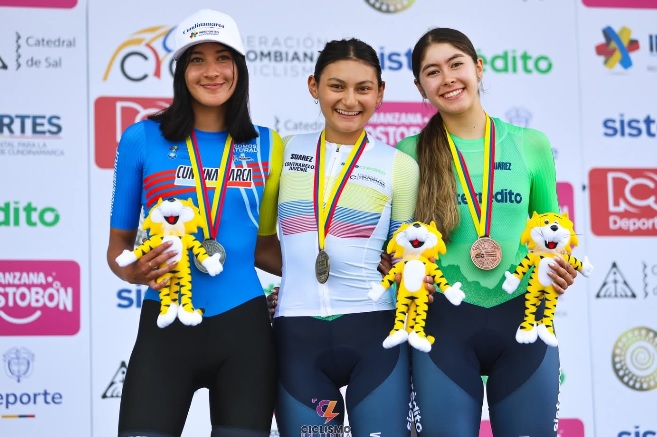 La risaraldense, Stefanía Castillo, la antioqueña Luciana Medina, ambas del Team Sistecrédito y la bogotana Ana Camila Castro de la Liga de la capital, ocupan...