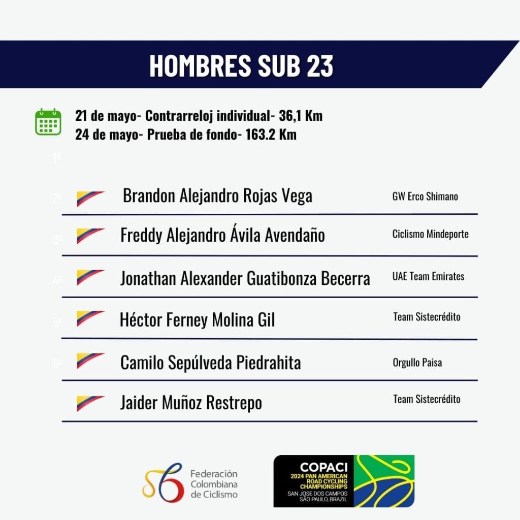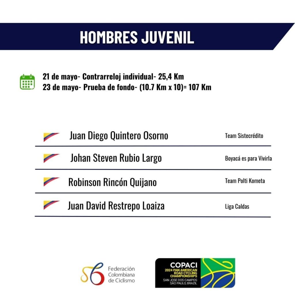 El campeón de la vuelta de la Juventud , Héctor Ferney Molina ,lidera la escuadra sub 23 ,en tanto que la campeona nacional Diana Peñuela con Lina Hernández ,comandan la elite de las damas y el campeón del Porvenir Juan Diego Quintero la categoría juvenil.