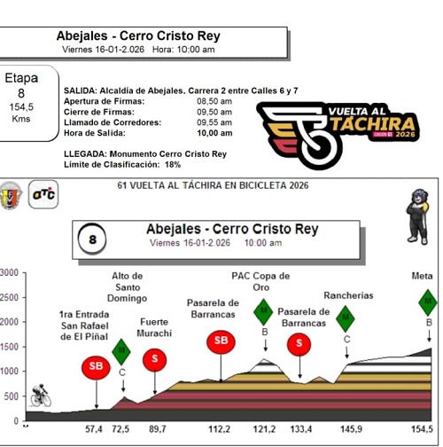 Este viernes la vuelta se disputa entre Abejales y el Cerro de Cristo Rey emblemático lugar tachirense.