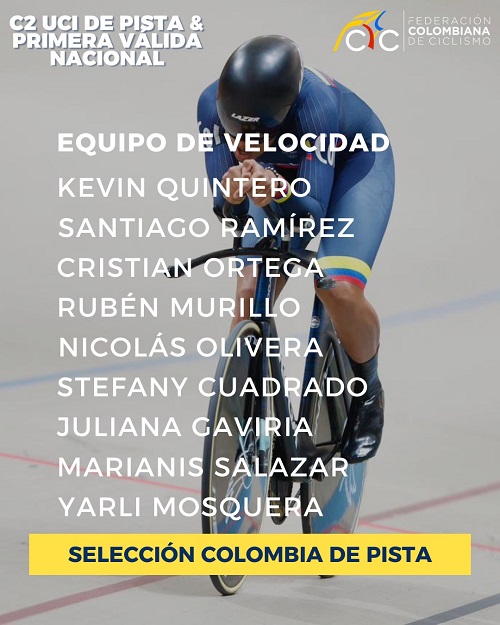 El departamento del Valle con los Gómez Pinilla, la selección Colombia en persecución por equipos tanto damas como varones se destacan en la Parada de la Copa UCI de pista en el velódromo Luis Carlos Galán de Bogotá.