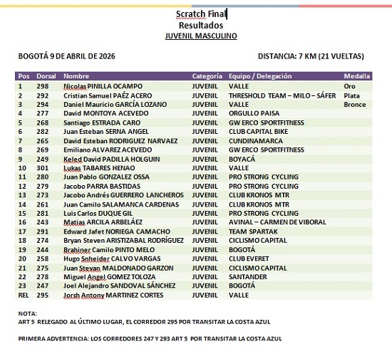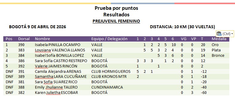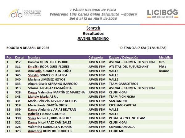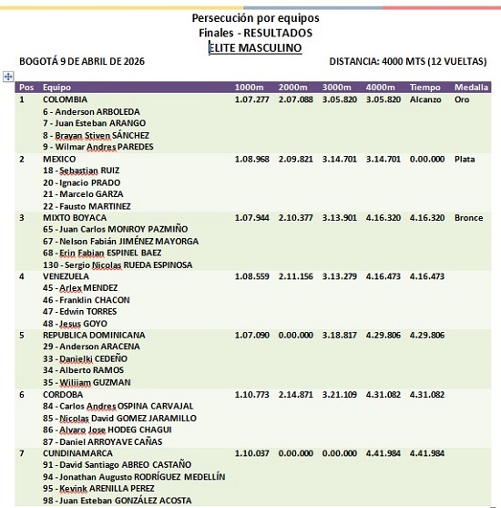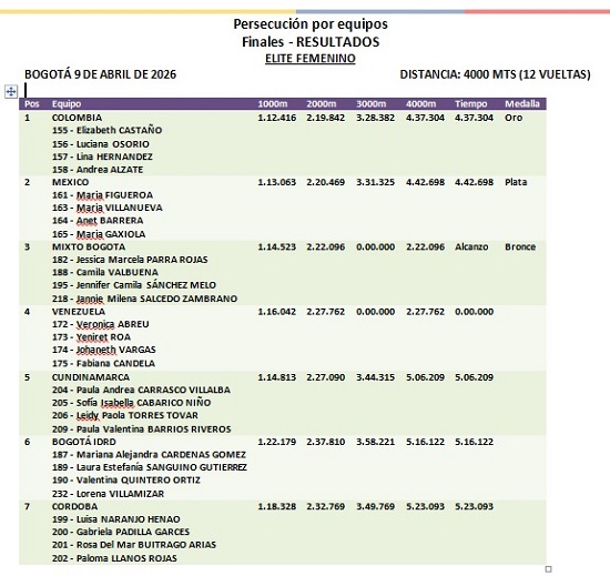 Resultados Copa UCI de Pista en Bogotá
