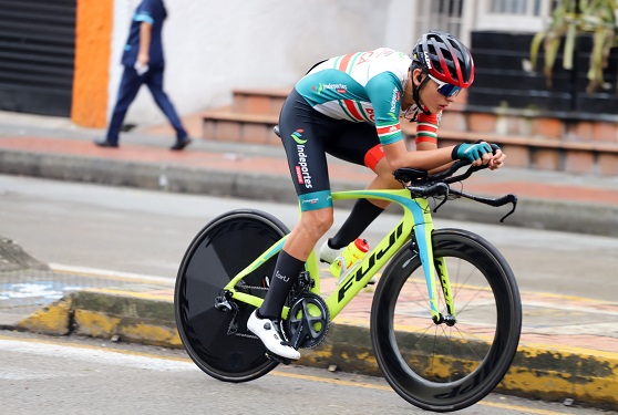 La caldense, Sofía Alfonso y el boyacense, Juan Camilo Aponte son los nuevos campeones de contrareloj individual corrida sobre 12.8 kilómetros por la carrera 27 de Bucaramanga.